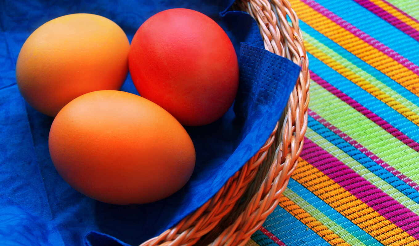 У нас можно скачать обои и картинки для рабочего стола три яйца в корзине на красочной скатерти на которых изображены colorful, table, basket, eggs, cloth. Все картинки и бесплатные фоны в хорошем качестве, размер 1920х1080 full HD.