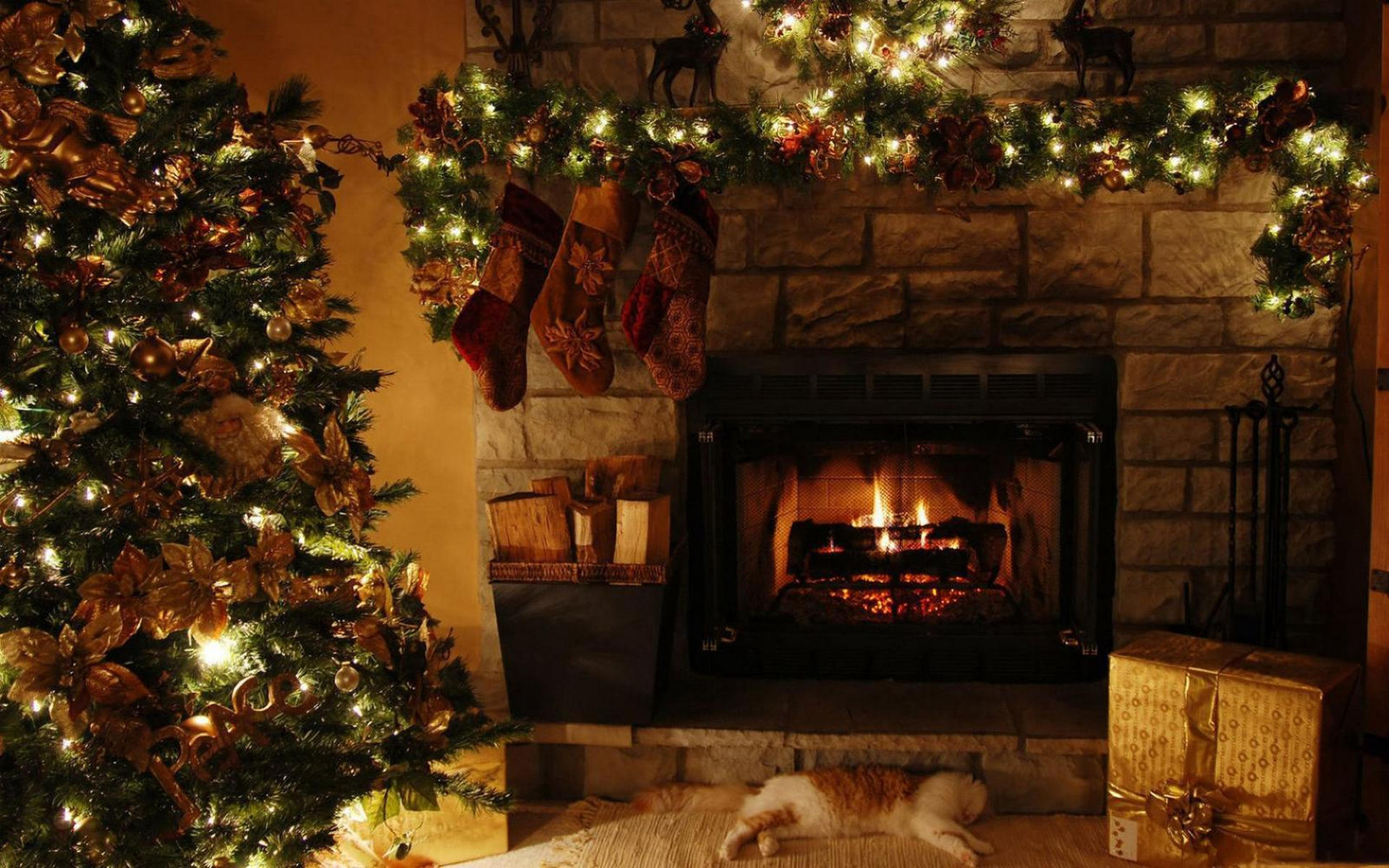 Назад на "арафская собака, лежащая перед камином с рождественскими украшениями"