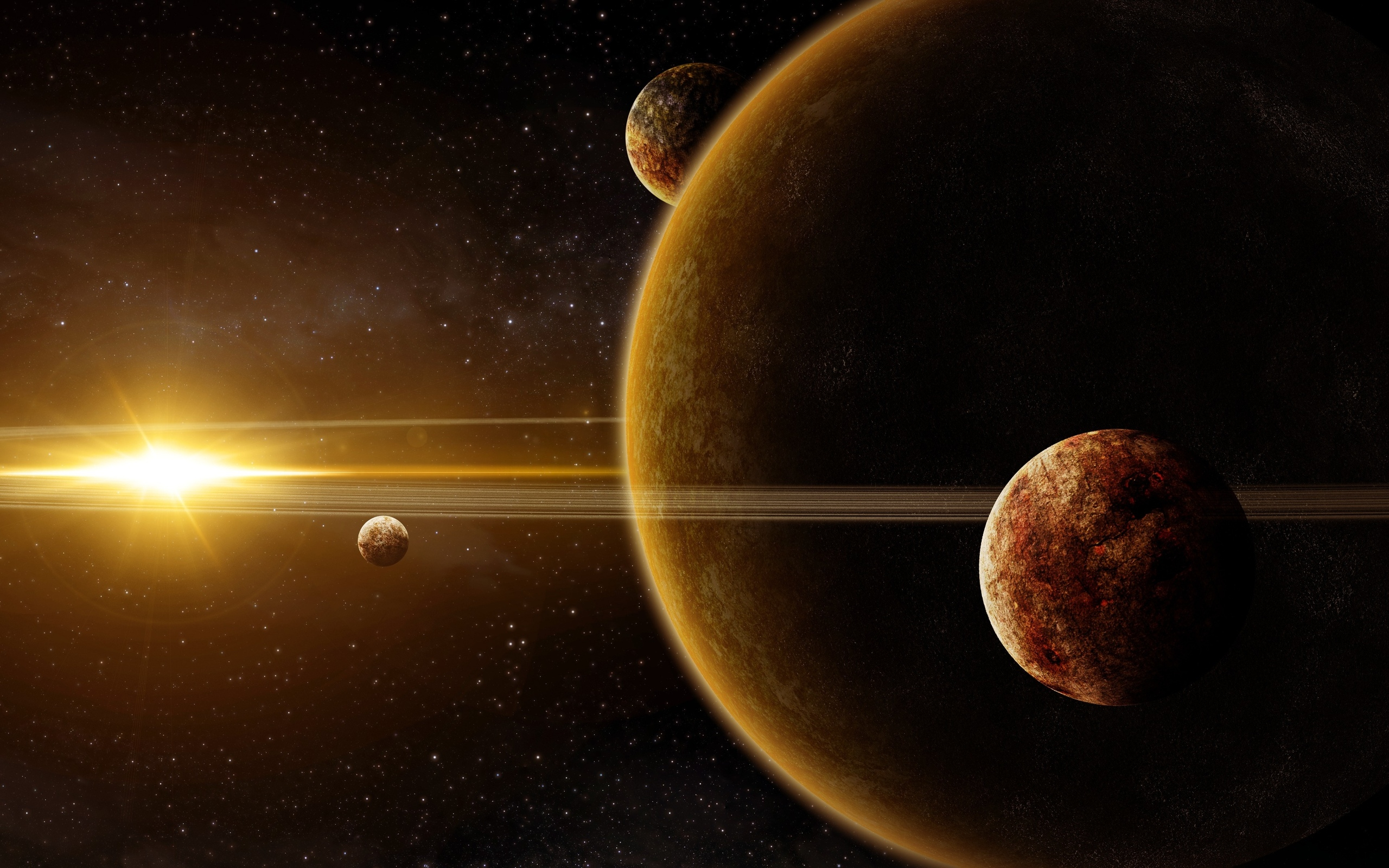 Назад на "планеты на заднем плане с ярким светом, сияющим вниз"