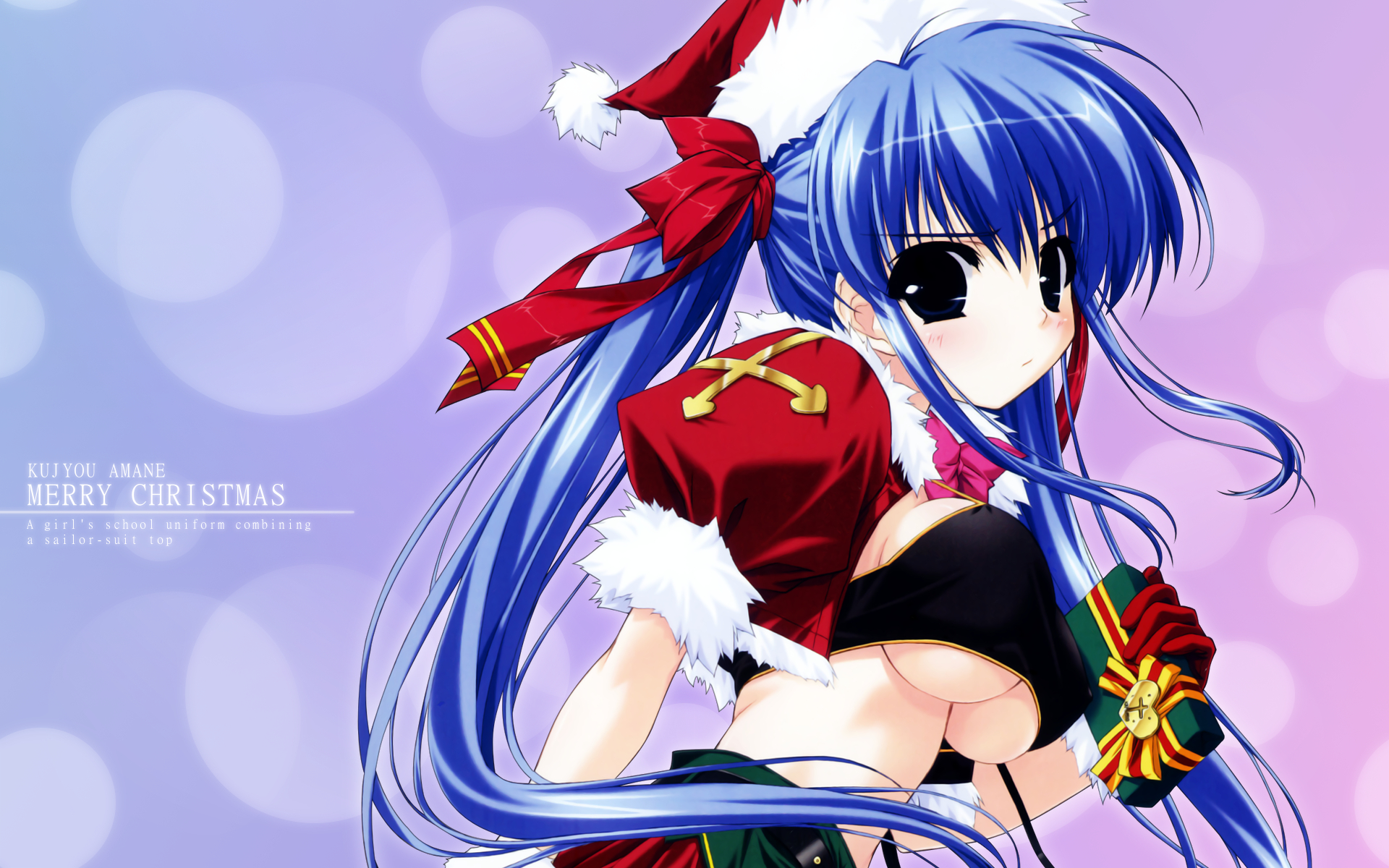 Назад на "девушка с синими волосами и шляпой санты позирует для фото"