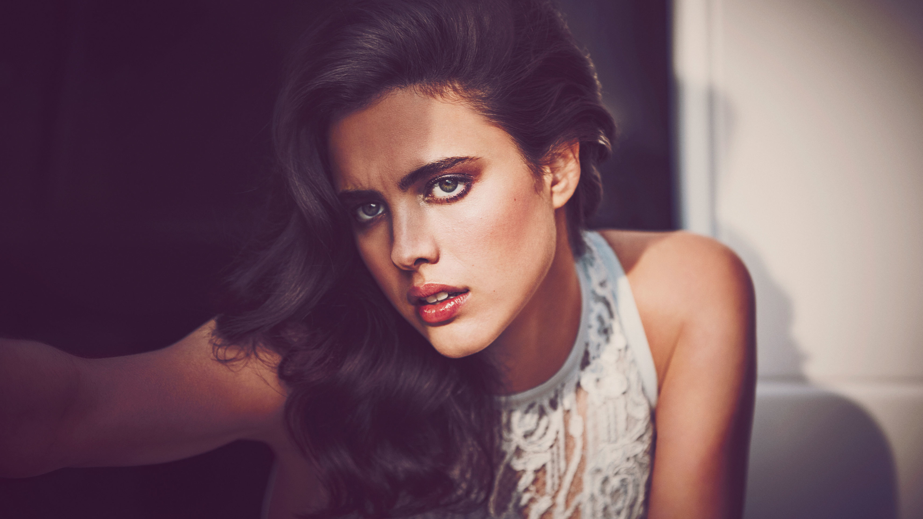 Назад на "женщина с длинными волосами и белым платьем позирует"