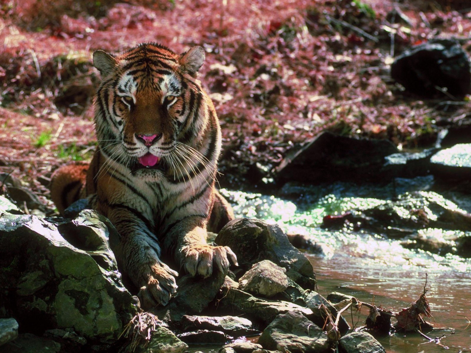 Назад на "тигр сидит на скале рядом с потоком"