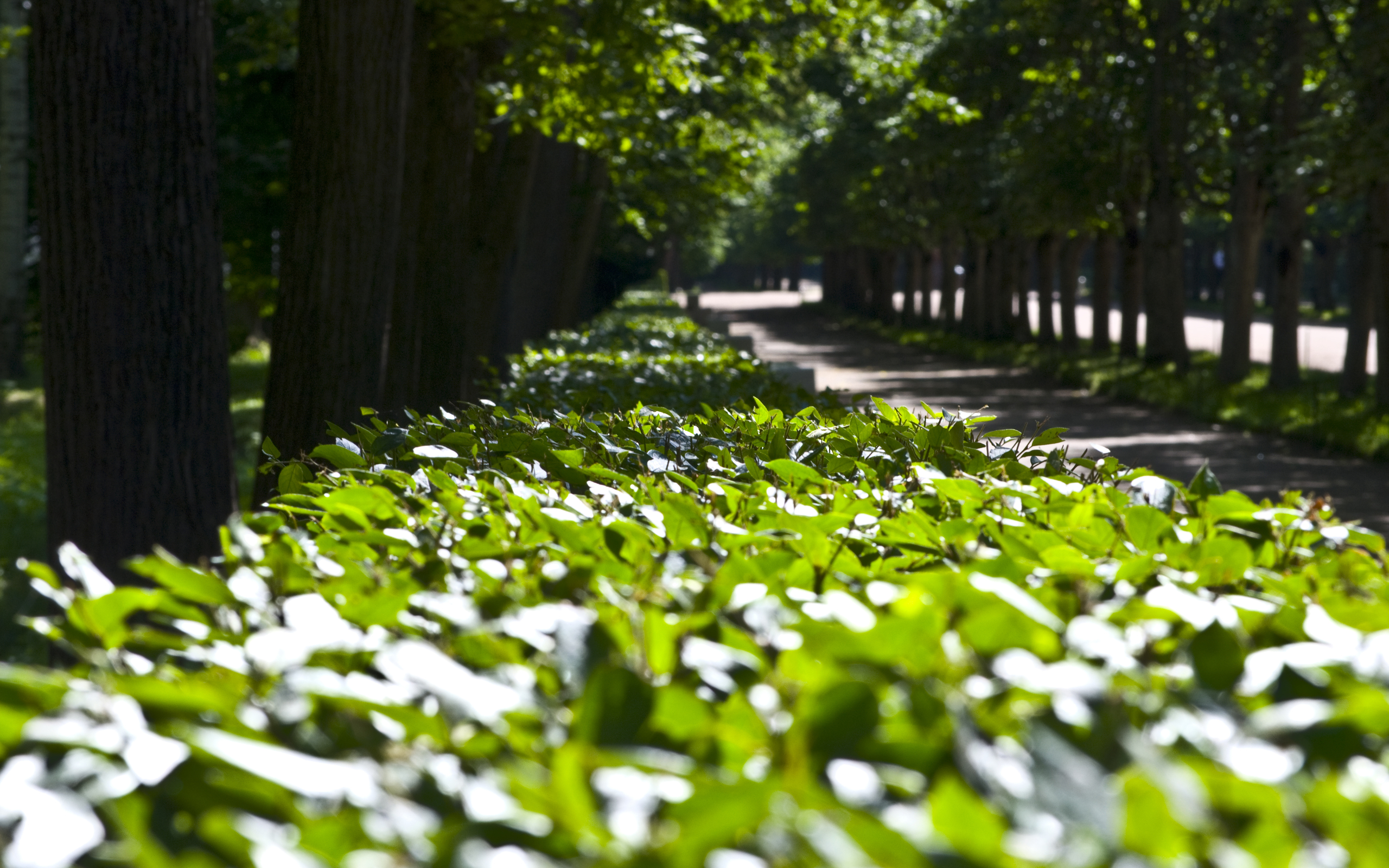 Назад на "существует длинный ряд деревьев вдоль пути с зелеными листьями"
