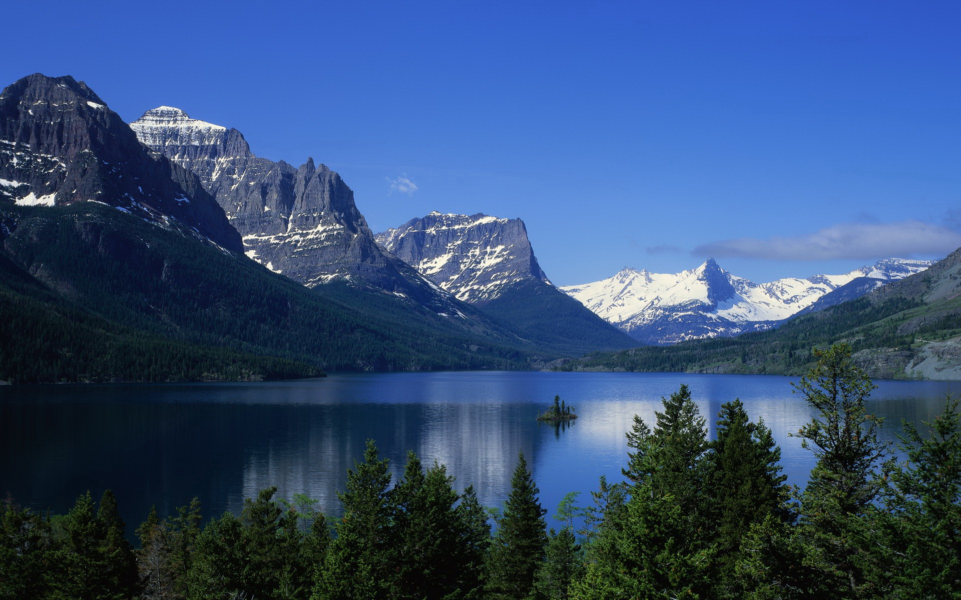 Назад на "горы и деревья окружают озеро посреди долины"