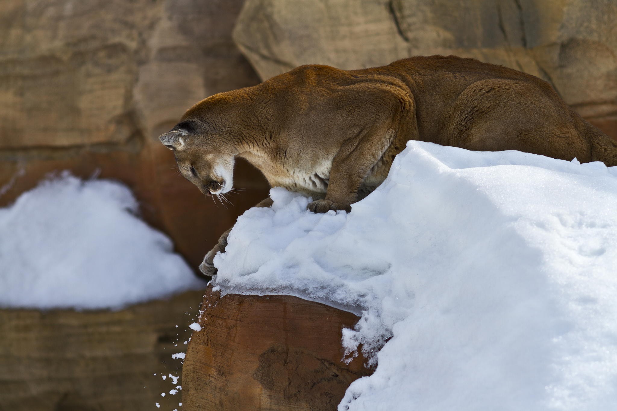 Назад на "большой бурый медведь стоит на скале в снегу"