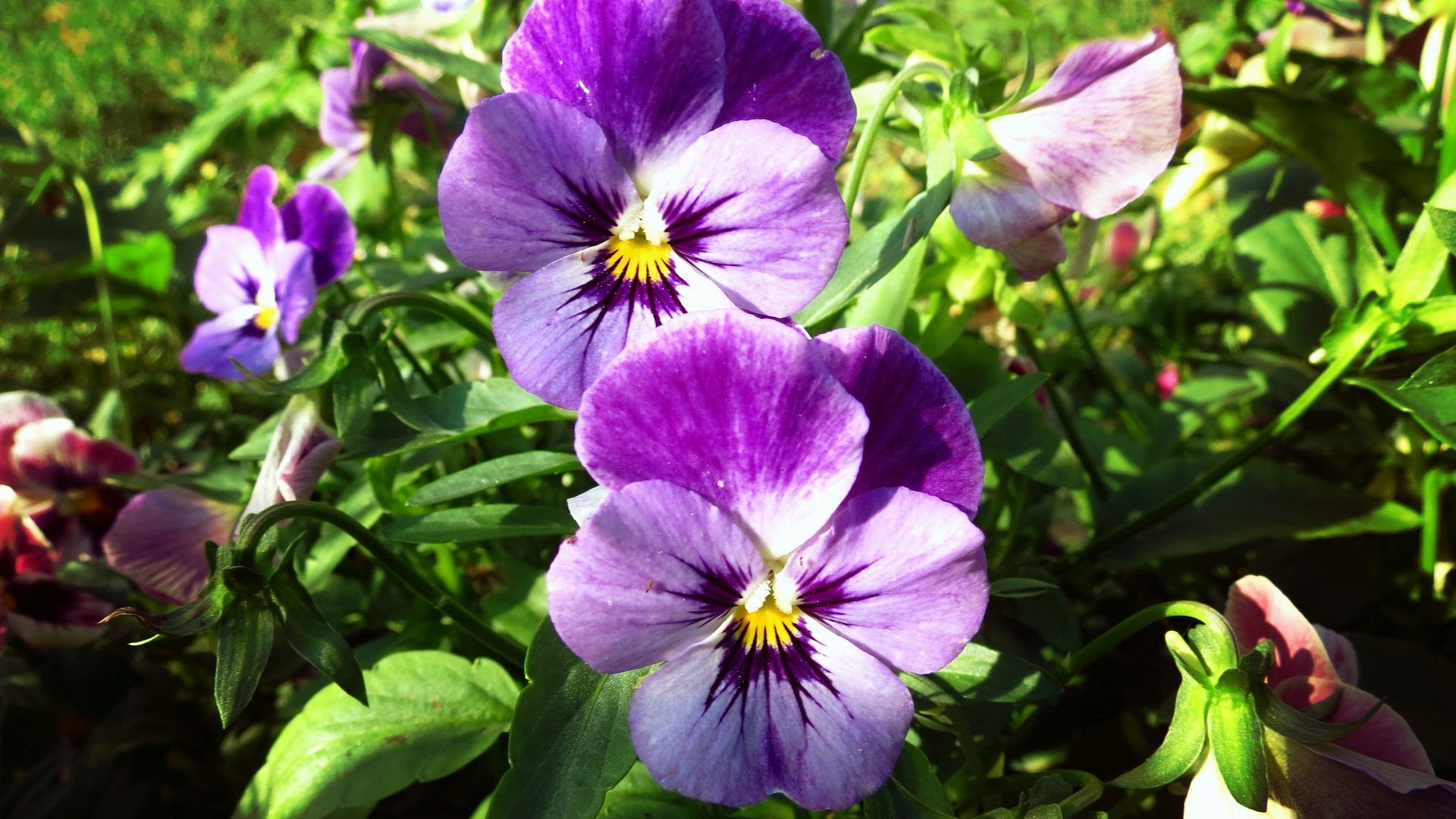 Назад на "фиолетовые цветы с желтыми центрами в саду с зелеными листьями"