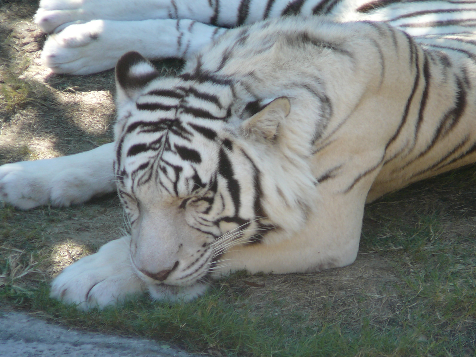 Назад на "белый тигр лежит на земле в траве"