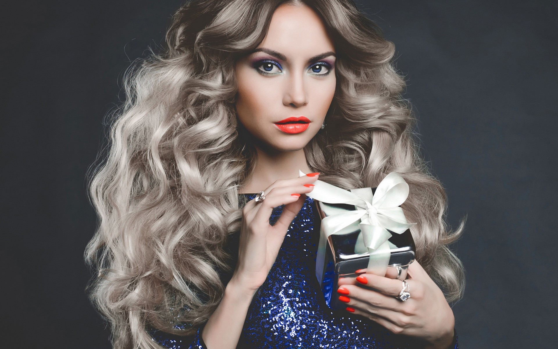 Назад на "женщина с длинными светлыми волосами держит подарочную коробку"