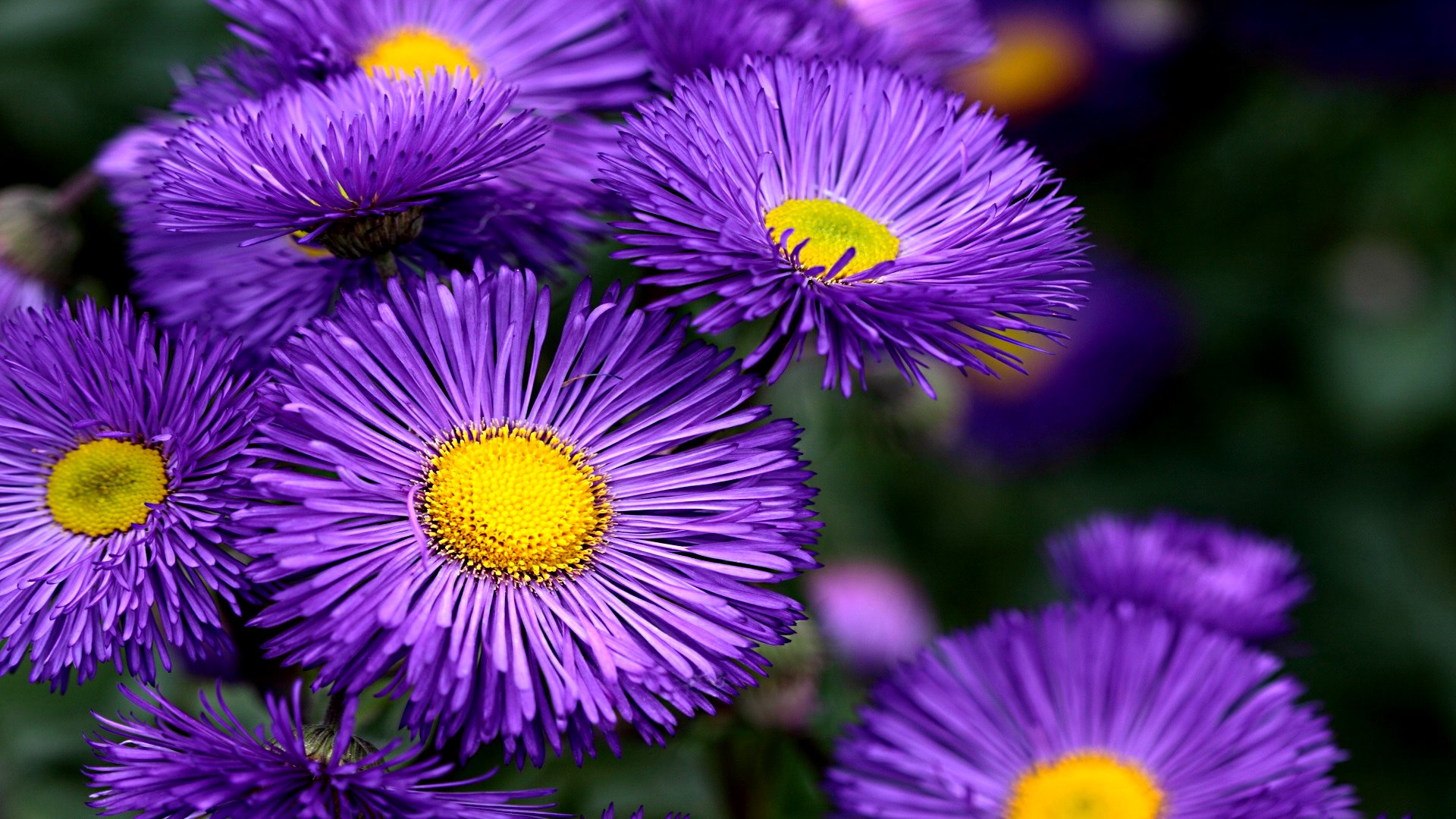 Назад на "фиолетовые цветы с желтыми центрами находятся в саду"