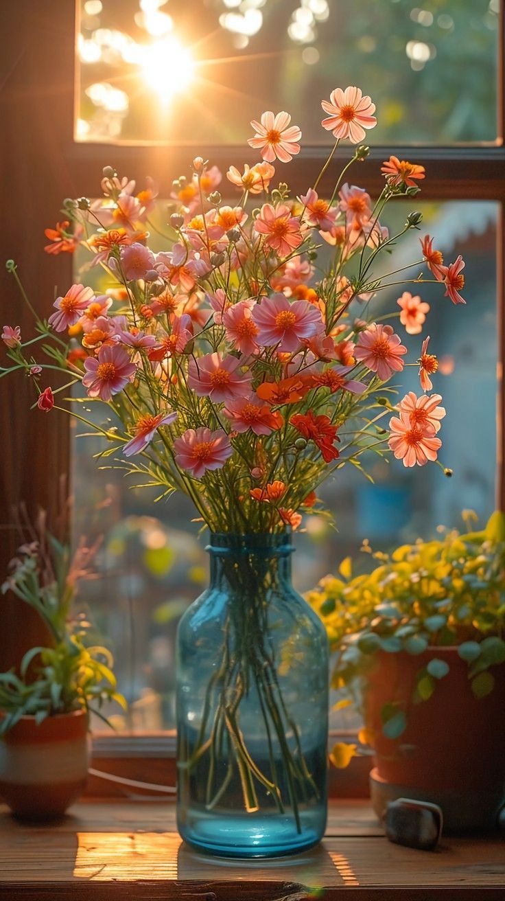 Назад на "в ней есть ваза с цветами, сидящая на подоконнике"
