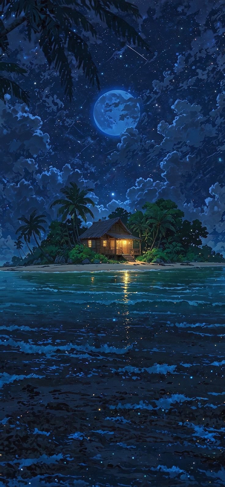 Назад на "ночная сцена тропического острова с домом на маленьком острове"