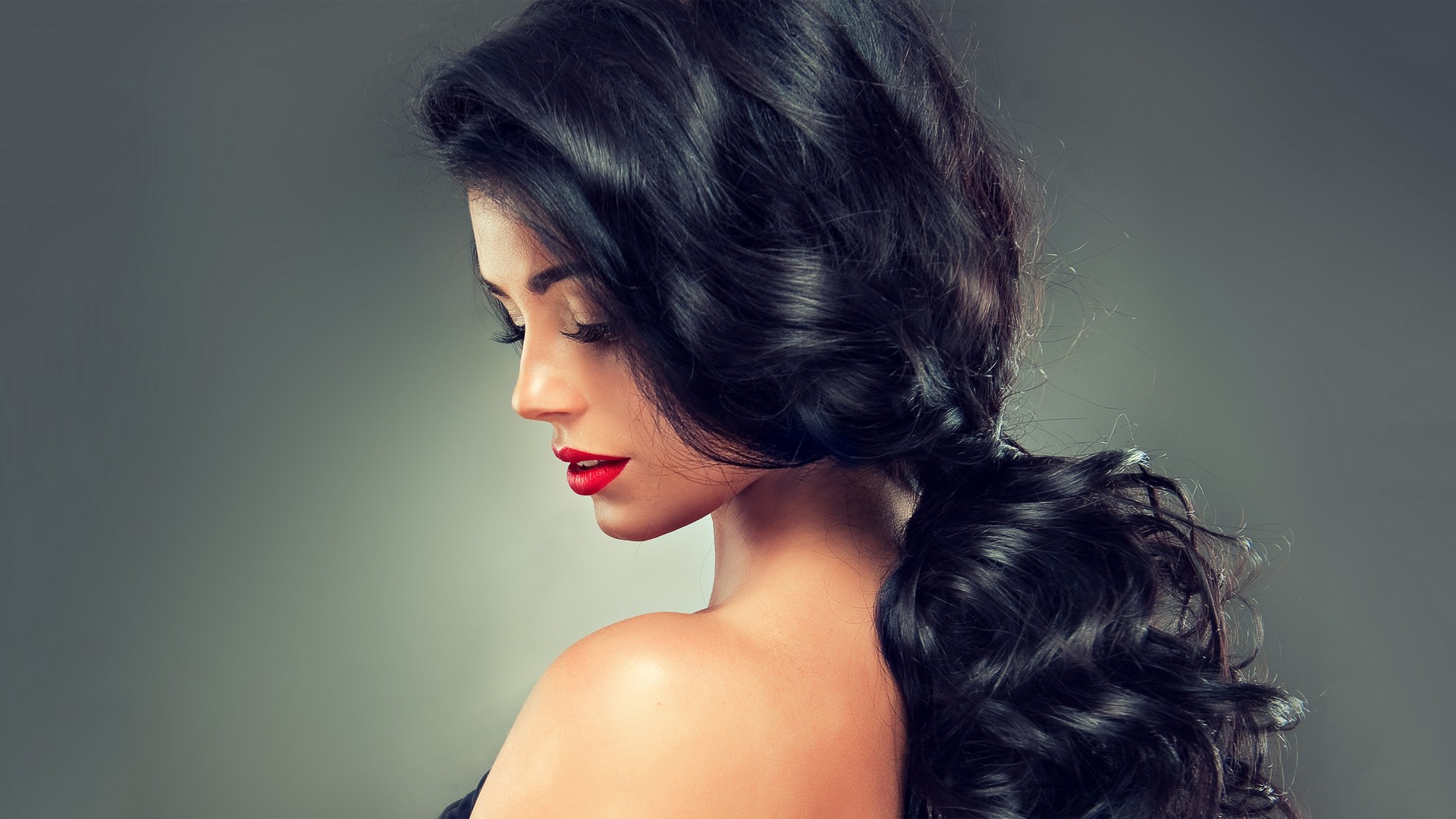 Назад на "женщина с длинными черными волосами и красной помадой позирует"