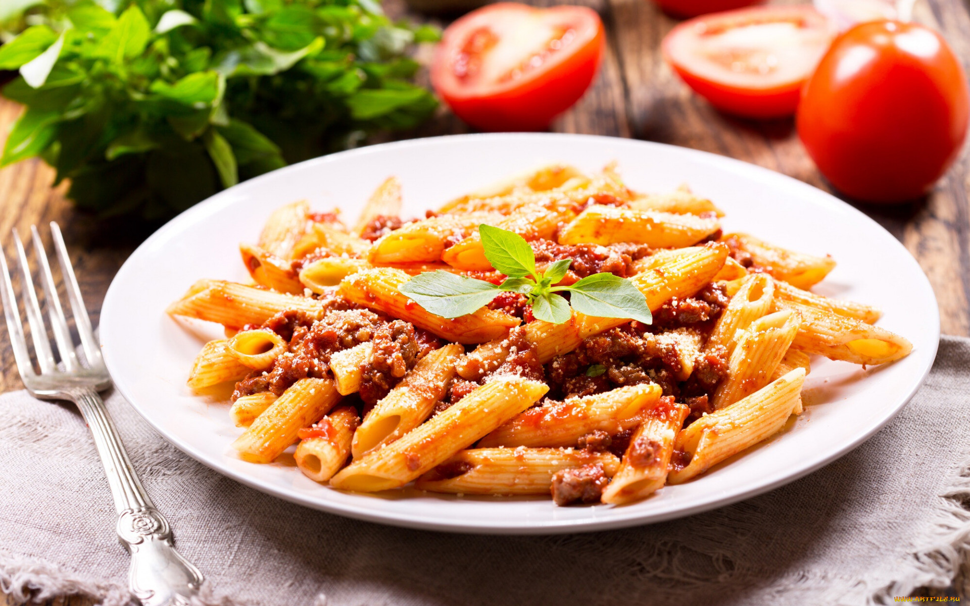 Назад на "арафи паста с мясом и томатным соусом на белой тарелке"