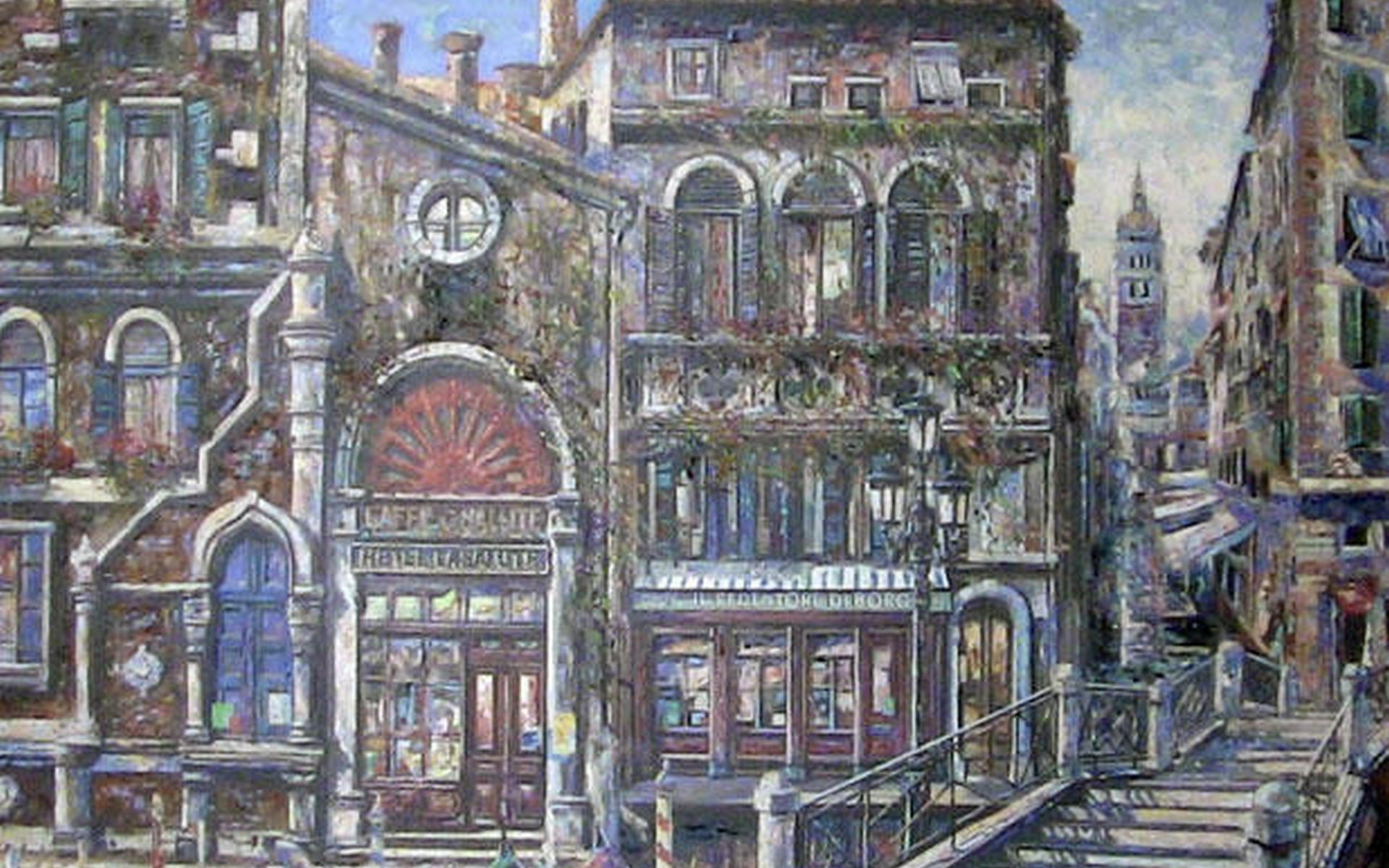 Назад на "картина городской улицы с башней с часами и зданием"