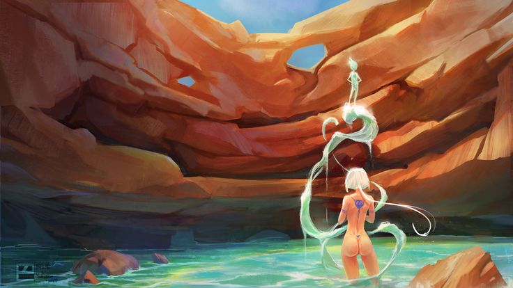 Назад на "девушка в бикини, стоящая в реке с мечом" Скачать картинку