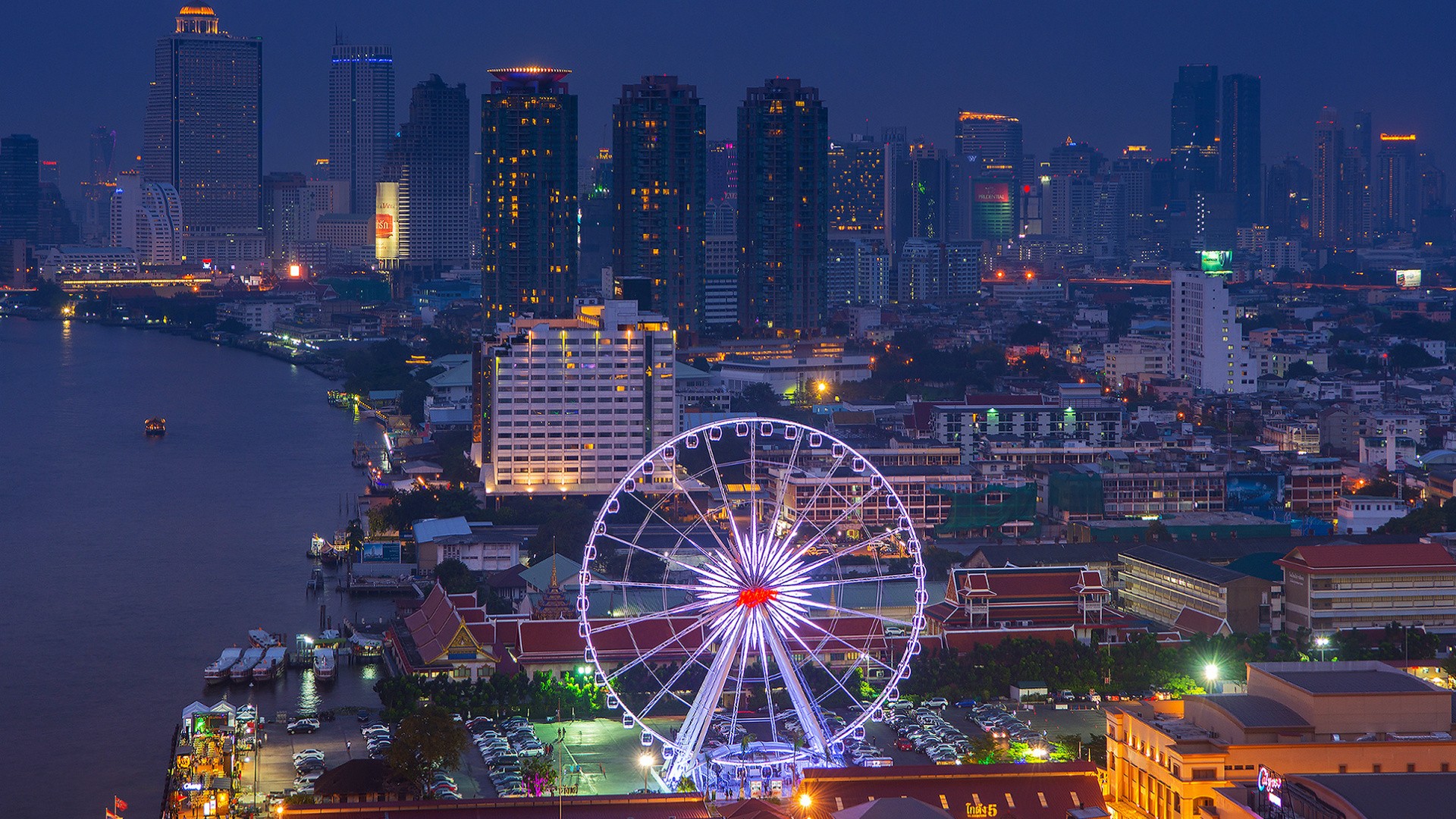 Назад на "необычный вид на город ночью с колесом обозрения на переднем плане"