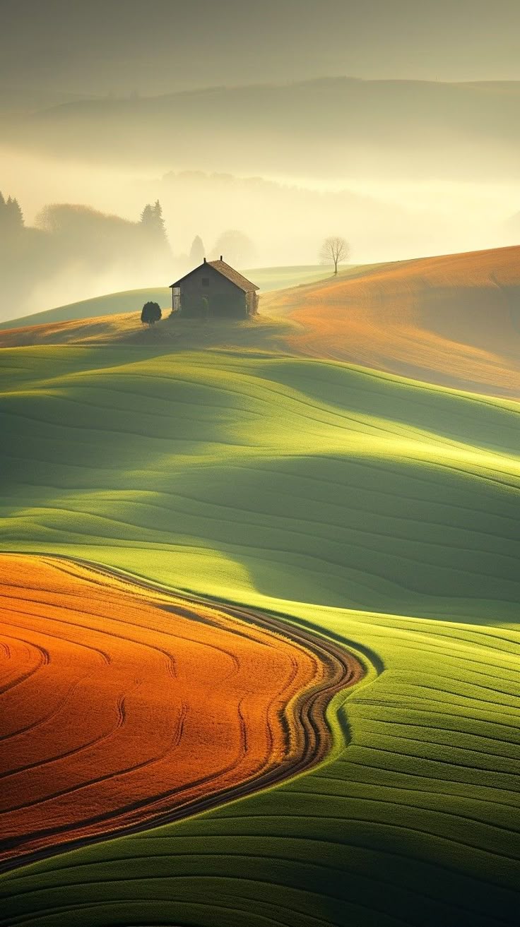 Назад на "вид на ферму в холмистом районе с домом"